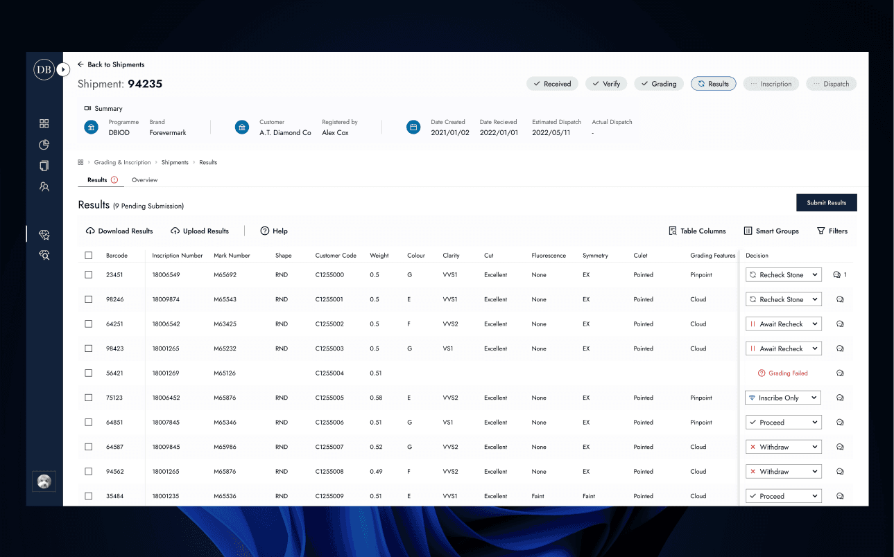 Users were entirely reliant on email communications, downloading and editing Excel files that account managers had to juggle between the labs and customers before final approval for inscription could be given.
