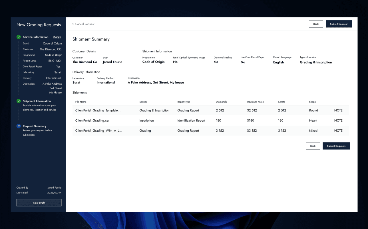 The Grading Portal was initially developed as a quick solution for customers to manage their grading requests without design thinking leading to problems with consistency, usability and more.